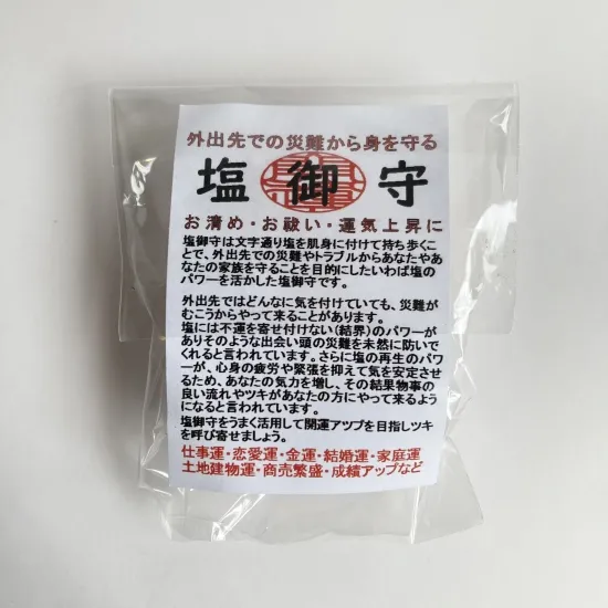 塩にはエネルギーを高め、厄を清め、足りない力をおぎない、幸運を呼び、運気上昇やお守りとしての効果があると言われています。