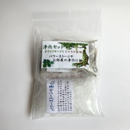 天然石やお部屋の浄化に最適なホワイトセージとヒマラヤ岩塩のセットです。
