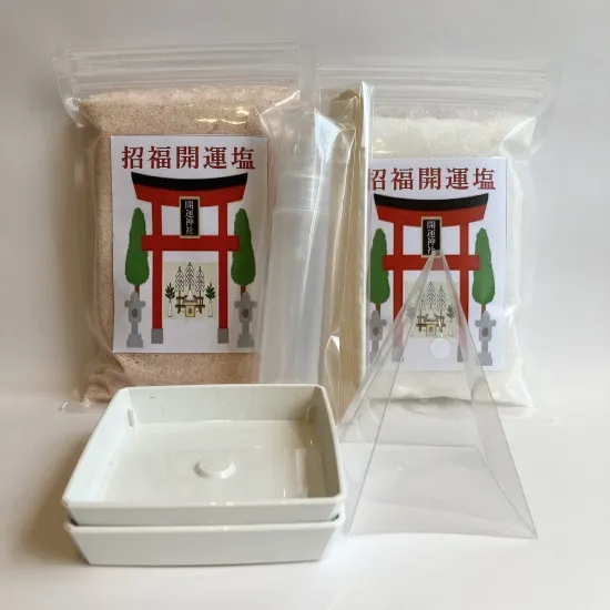 ご家庭で手軽に盛り塩ができる!ホワイトソルトの2袋に盛り塩を作るために必要な道具一式をセットにしたお得キットです。
