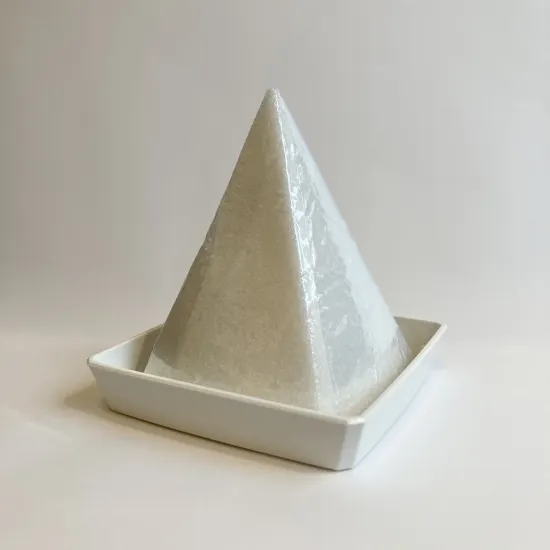 - 皿の上に三角状に出来上がれば成功です。もし上部がくずれてうまく三角が出来ない時は、初めからやり直して三角状になるようにしてください。