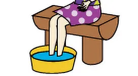 洗面器に水を張り、塩をコップ半杯ぐらい入れ常に塊が溶けずに残るようにします。この水は脱水力が強く、これに足裏をつけて15~20分!足の裏から脱水し老廃物も排出してくれます。足揉みと同じ効果となります。足のかさつきもツルツルに。